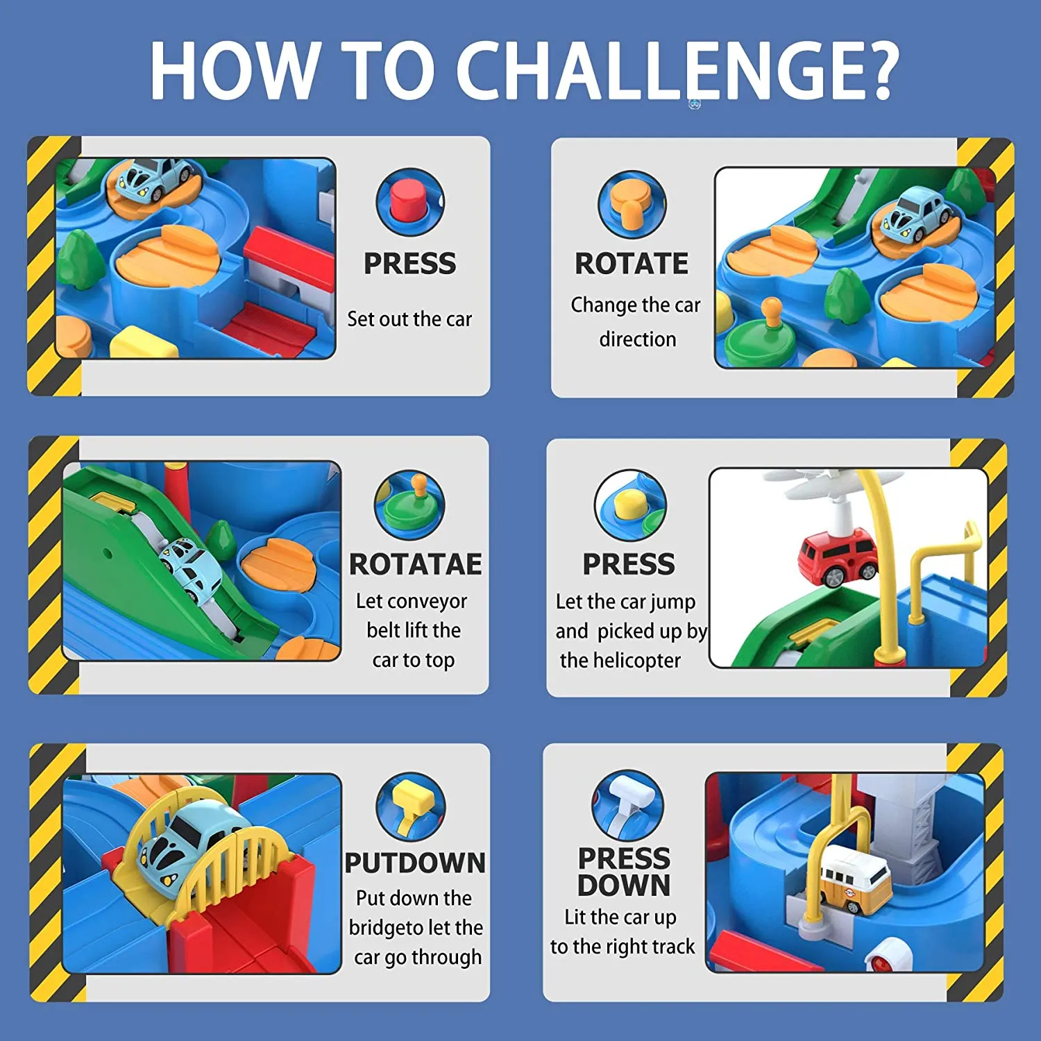 Car Adventure Toy, Race Tracks For Boys Car Adventure Toys for 3+ Year Old Boys Girls, City Rescue Preschool Educational Toy Vehicle Puzzle Car Track Playsets for Toddlers